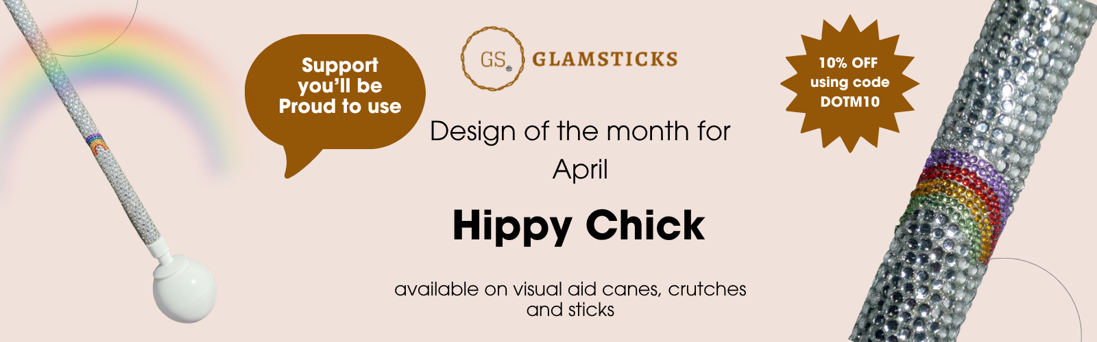 Out with the hospital grey and in with the uniquely you. Show off your style with a personalised walking stick, all lovingly handmade to your exact requirements. Make your crutch, walking stick, trekking pole and visual aid match your personality by telling us exactly what you'd love to see. Then leave it up to us to create your beautifully unique mobility aid covered in sparkling Rhinestones delivered straight to your door. Take the dull out of disability.