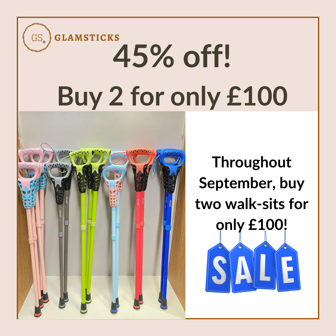 This is a cane & and a chair. Foldable lightweight, carbon fibre multi-purpose sticks, with an all terrain spike and none slip ferrule that come in a number of colours. Our walk sits are height adjustable, ergonomic seating, light weight, feature smart touch handles, all terrain spikes and have a non slip ferrule.